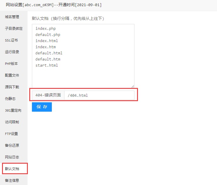 在網(wǎng)站管理“默認(rèn)文檔”頁面。