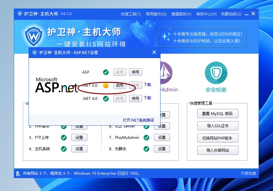 沒有安裝asp.net2.0的原因,您點(diǎn)“啟用”即可安裝。
