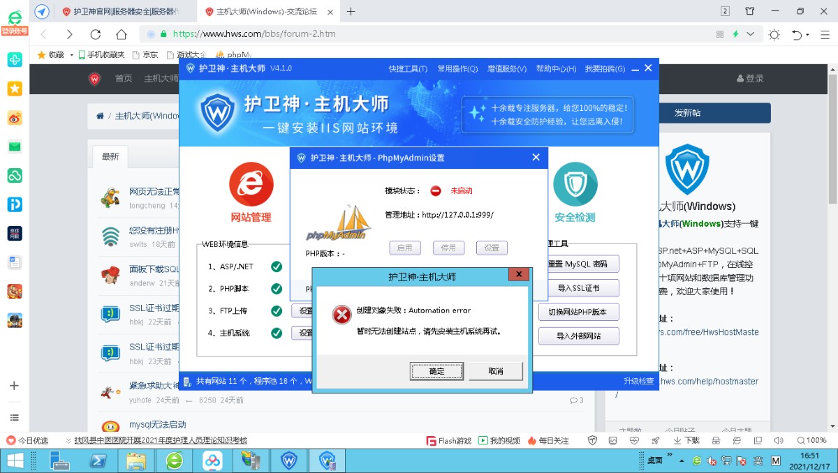 phpamydmin突然出現(xiàn)不能正常啟動(dòng),重新安裝也安裝不上。怎么解決?