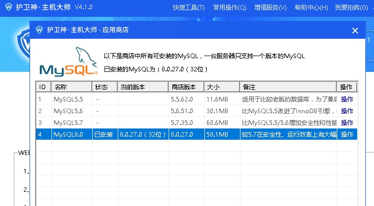您好,經(jīng)測(cè)試,這個(gè)是主機(jī)大師應(yīng)用商店顯示的bug。mysql實(shí)際上是64位的。如下圖: