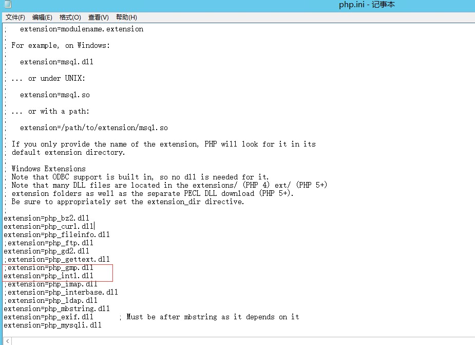 找到此行;extension=php_intl.dll