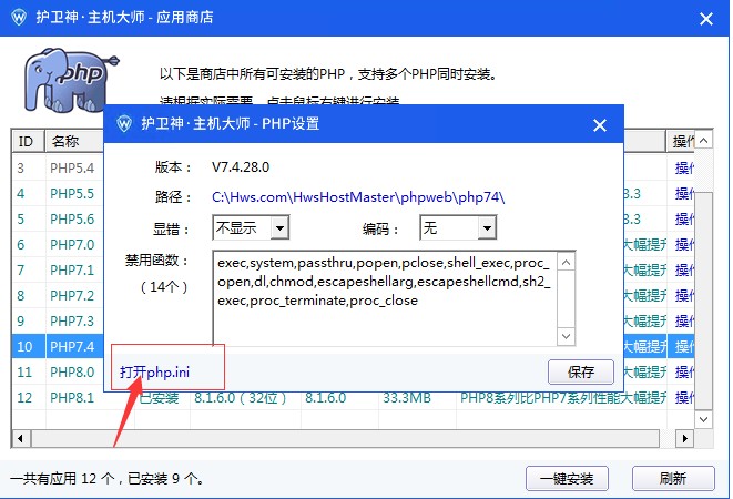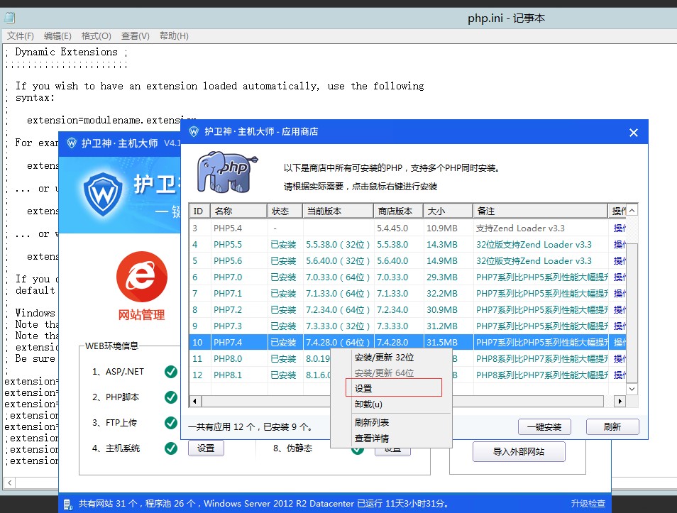 打開主機大師-PHP腳本-右鍵相應(yīng)的PHP版本,找到“設(shè)置”