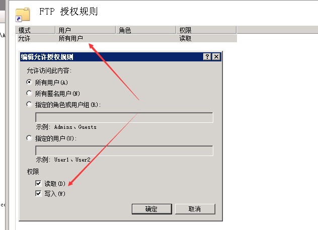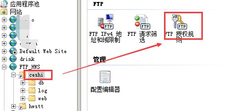 第三步:進(jìn)入FTP站點(diǎn),選中添加的虛擬目錄-“FTP授權(quán)規(guī)則”-增加“寫入”權(quán)限
