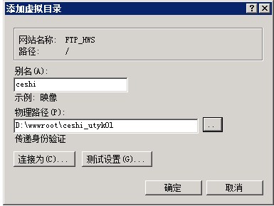 別名填寫FTP賬戶,物理路徑填寫網(wǎng)站路徑。