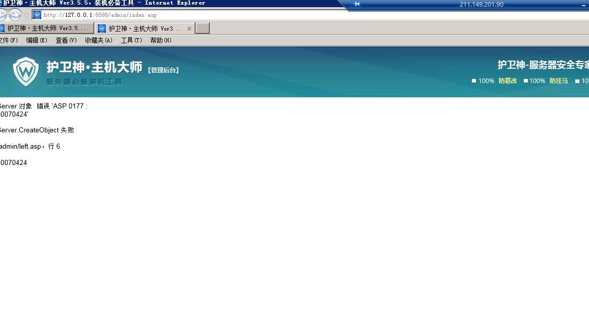 護衛(wèi)神網(wǎng)站管理進入后出錯