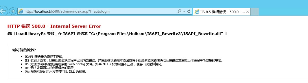 調(diào)用 LoadLibraryEx 失敗,在 ISAPI 篩選器 "C:\Program Files\Helicon\ISAPI_Rewrite3\ISAPI_Rewrite.dll" 上