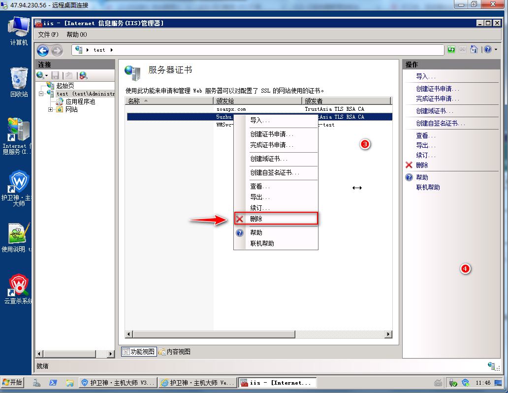 右鍵點擊需要刪除的證書,如下圖3、圖4所示
