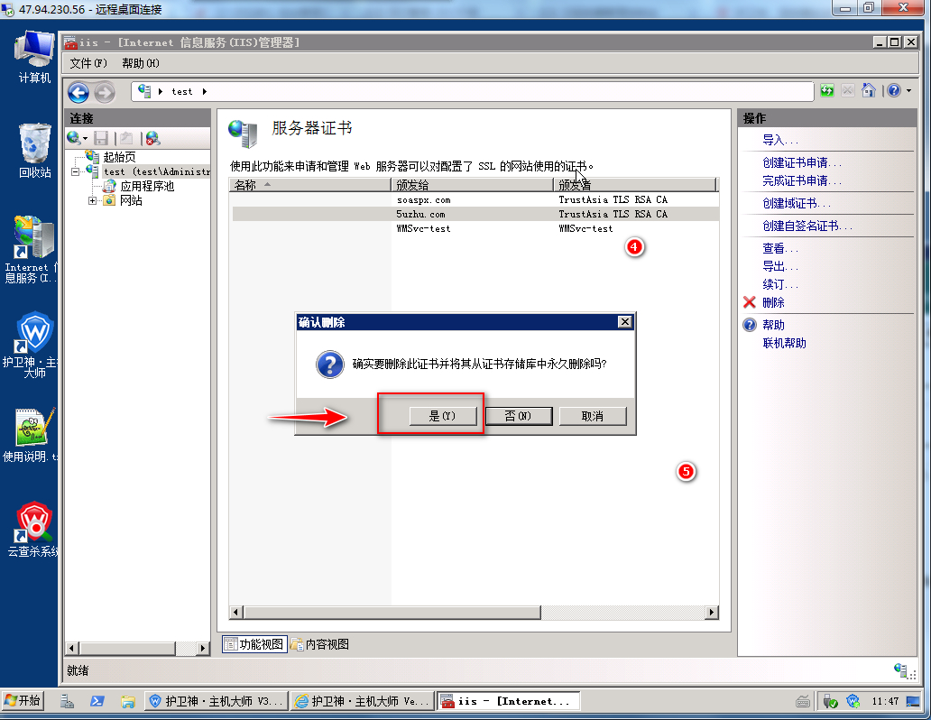 如需要刪除網(wǎng)站SSL證書,可按以下方法操作。