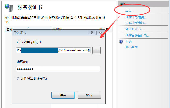 2、選擇PFX證書文件,并輸入證書密碼(如下圖):